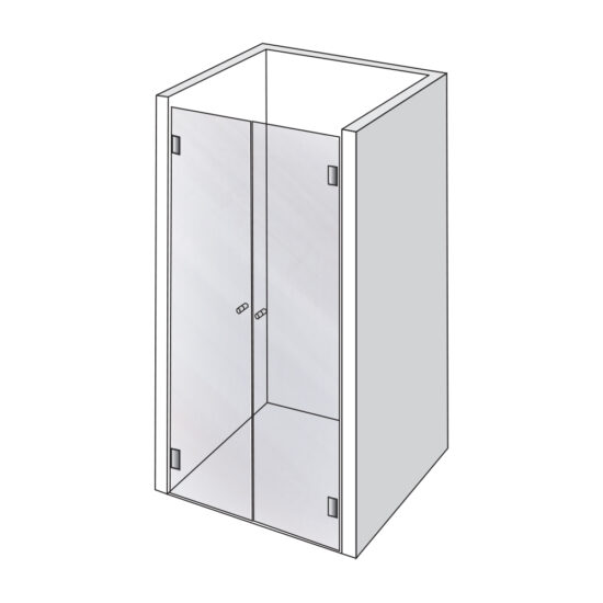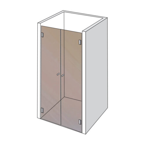 Firkantet dobbelt brusedør i 8 mm hærdet Satimat glas